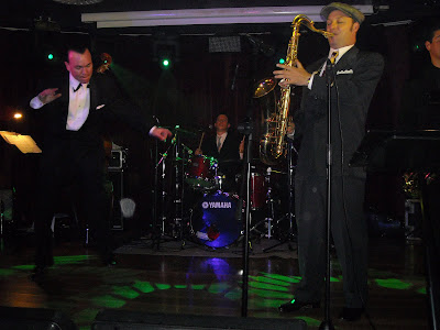 Mis dudas tenía de ir a este concierto en un principio, empezando porque ni la hora ni el dia eran de lo más oportunos, y programado como estaba para el domingo a las 23:30 h. de la noche si había que madrugar el lunes era para pensárselo un poco. Pero casualmente gracias a mi amigo Cesar conseguí una invitación a última hora así que pocas excusas podía ya poner, había que estar ahí de nuevo, en la Sala Acapulco, justamente donde los había visto hace un par de años... ¡Cómo pasa el tiempo!. La Royal Crown Revue se deja caer a menudo por esta ciudad, afortunadamente, y gracias a su buen hacer a lo largo de todos estos años se ha ganado una buena legión de fans incondicionales que no faltan a la cita cuando eso sucede. Finalmente seríamos un centenar de personas, aproximadamente, las que nos juntamos allí para recibir a Eddie Nichols y los suyos.
